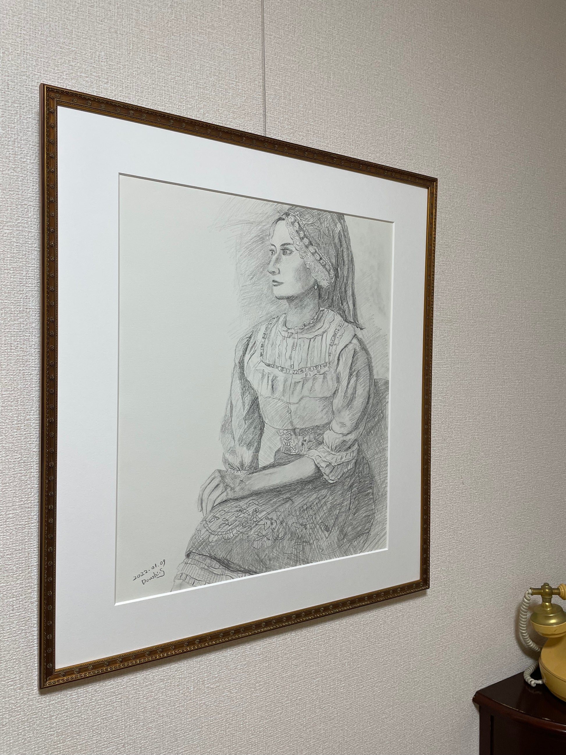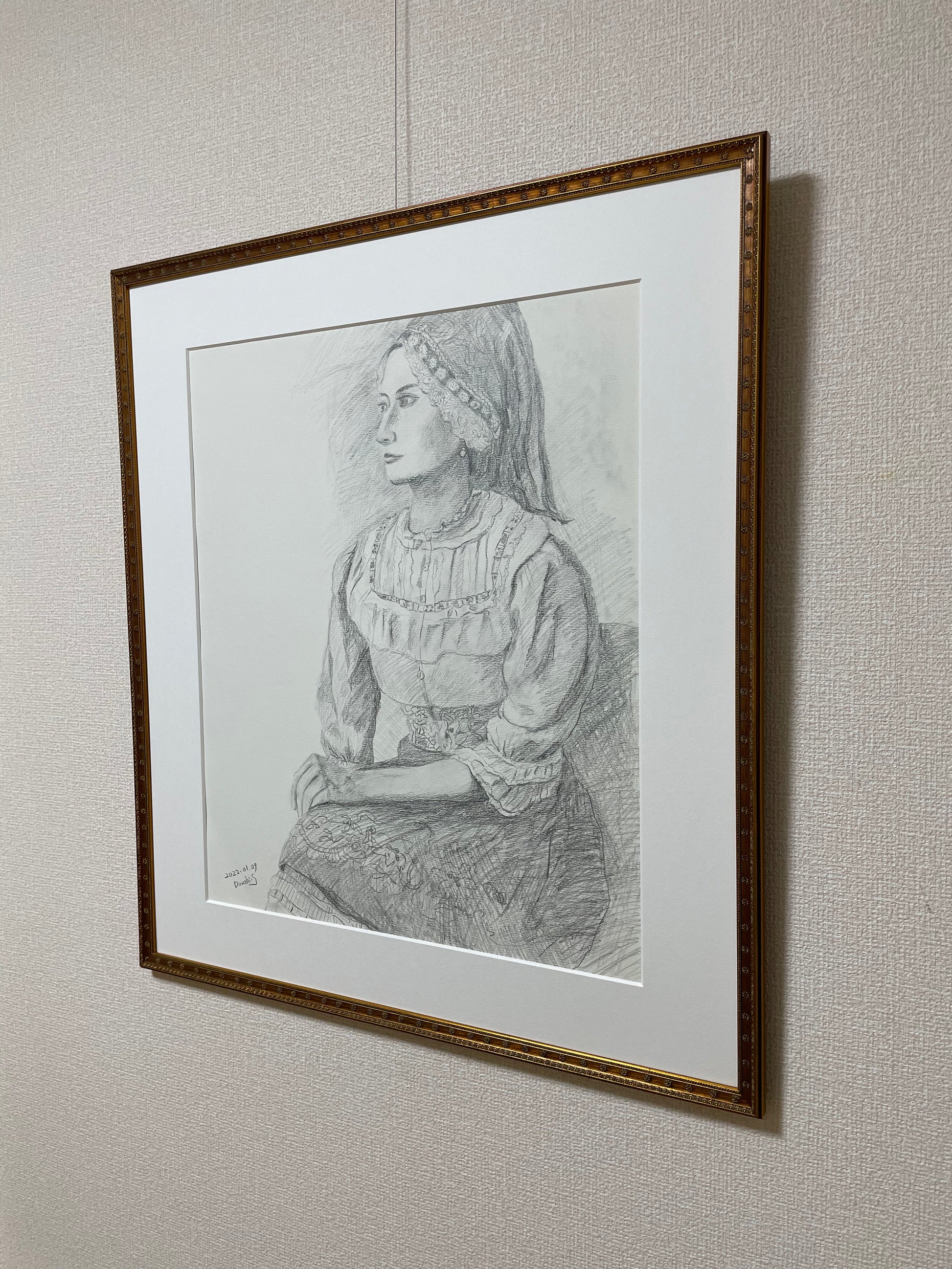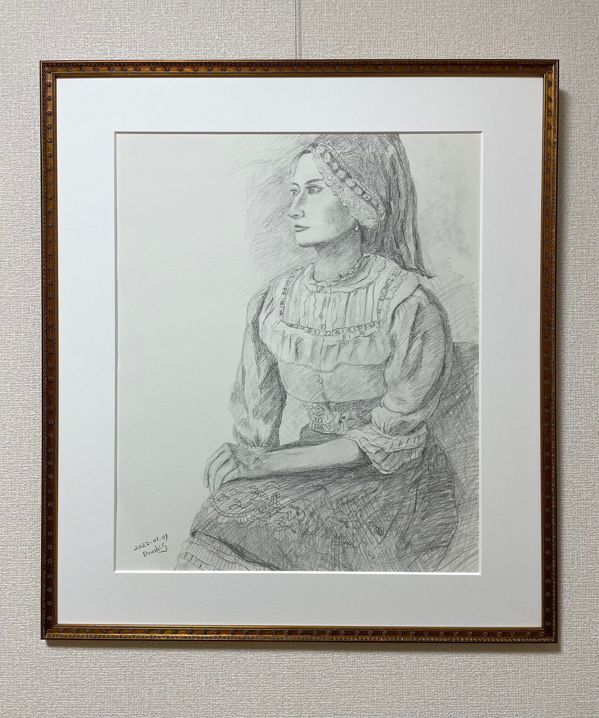この日はモデルにスイス風の衣装をお願いし、実際に見て描きました。