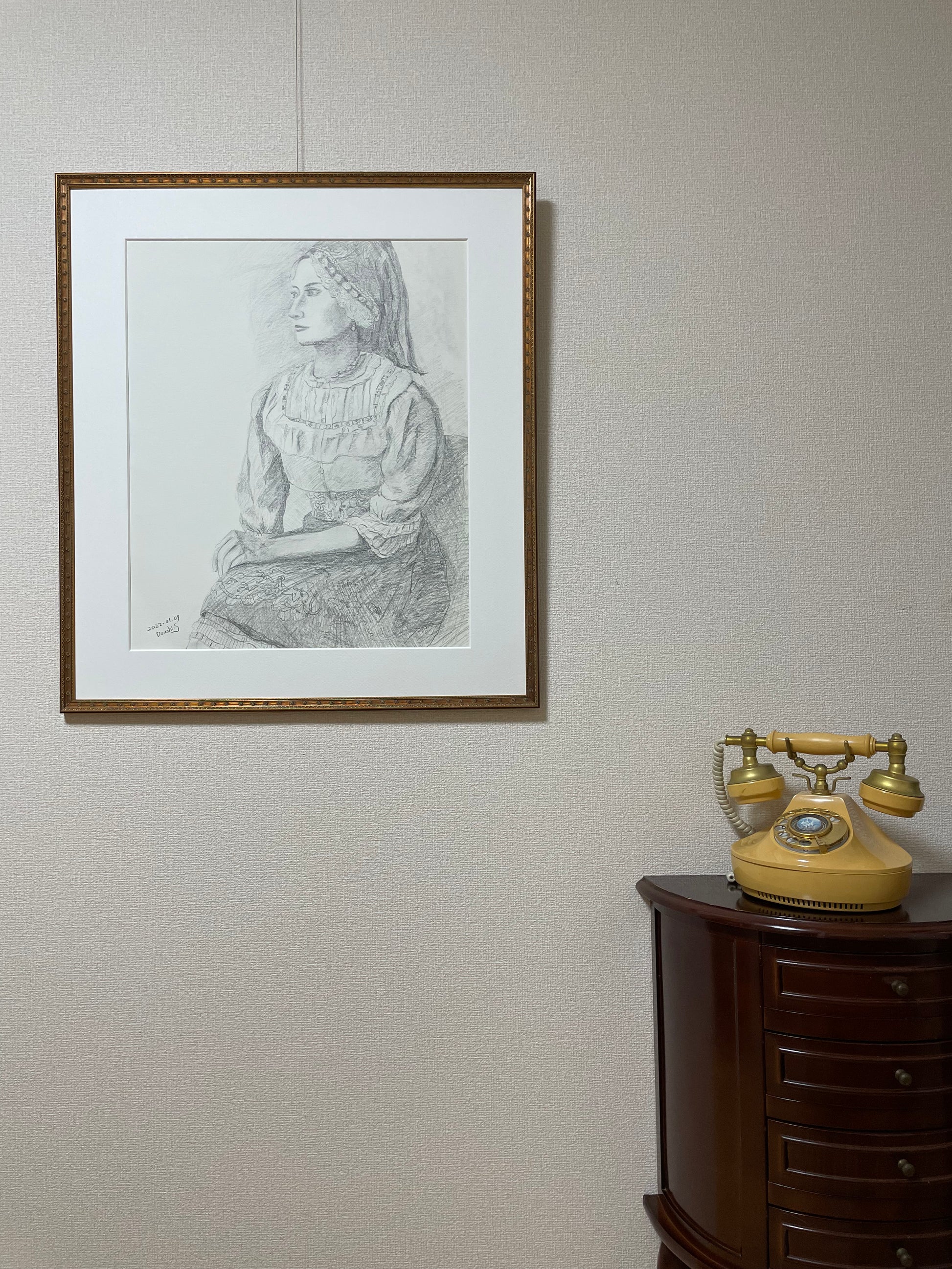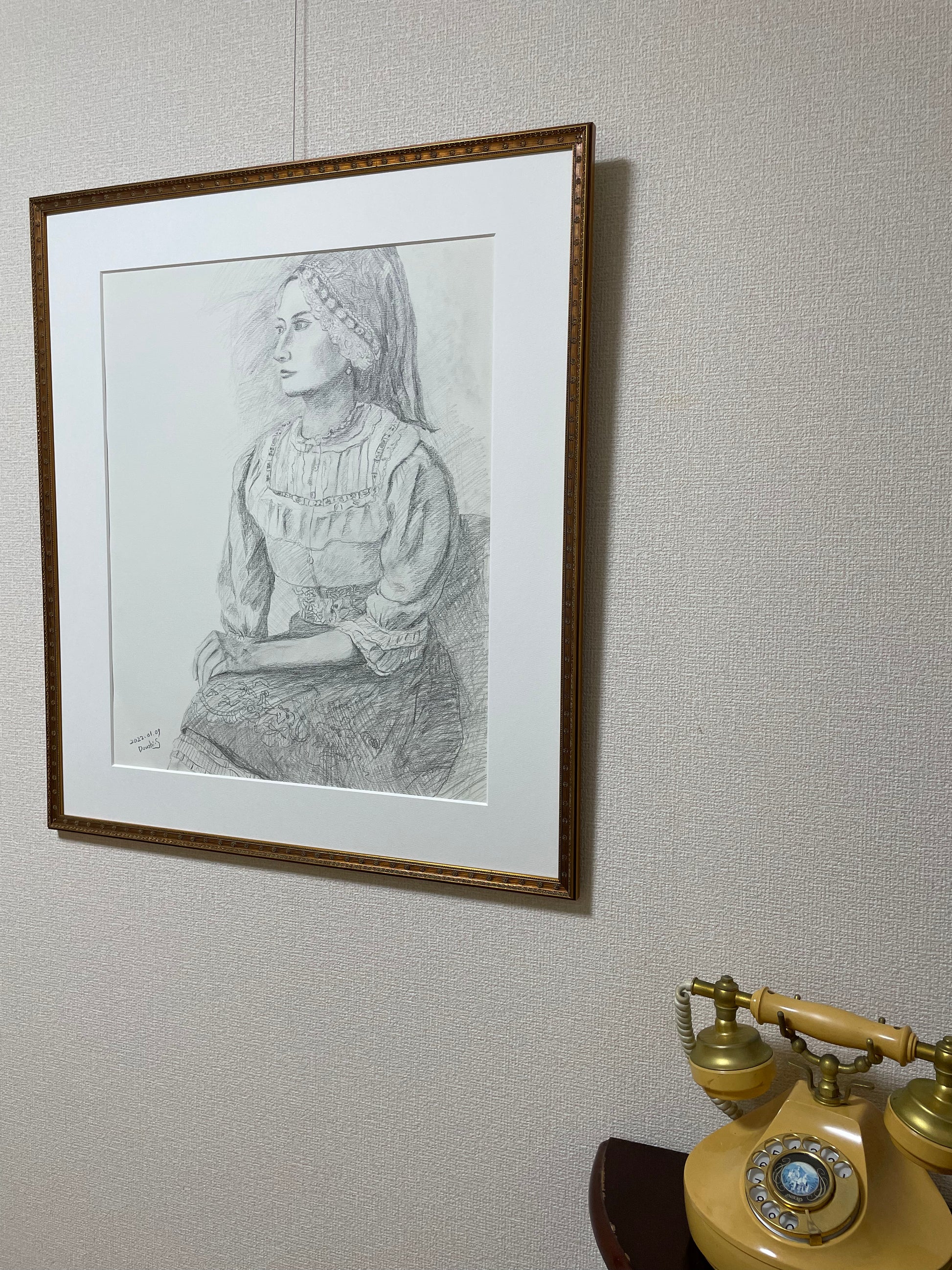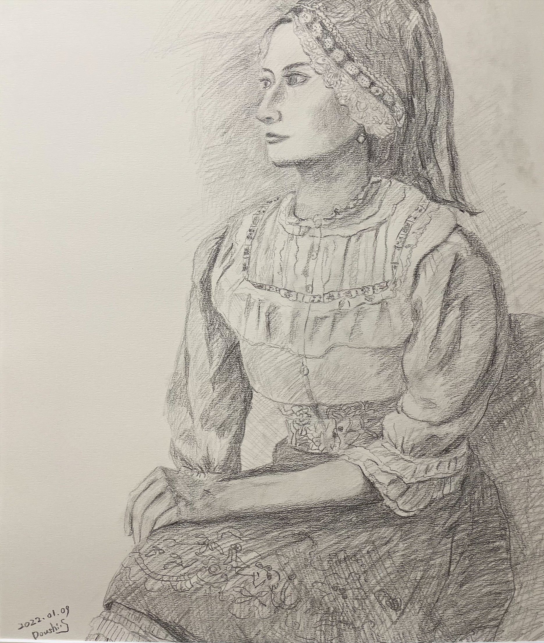 この日はモデルにスイス風の衣装をお願いし、実際に見て描きました。