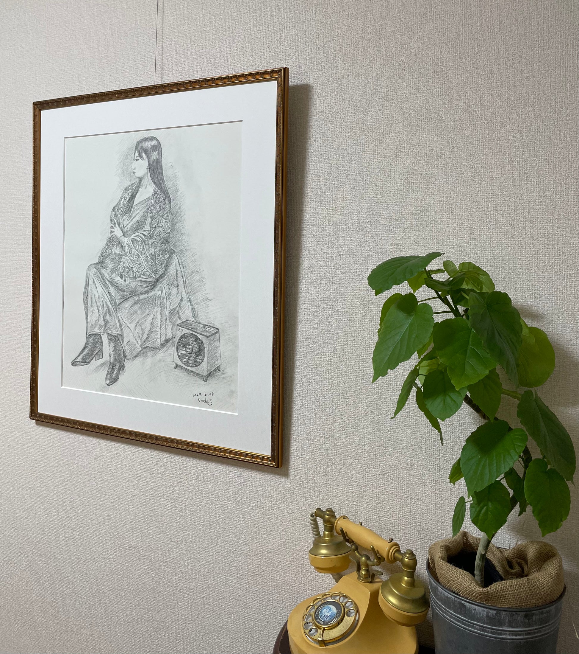 アクセントに日本のレトロなストーブを置いて描きました。