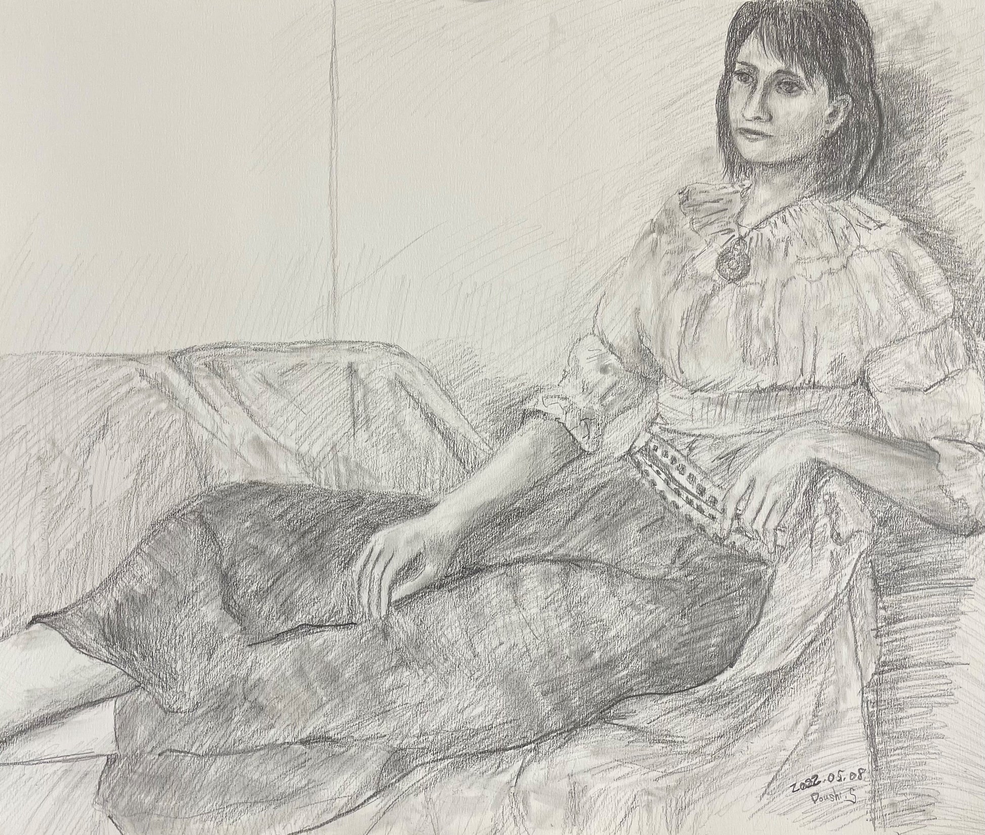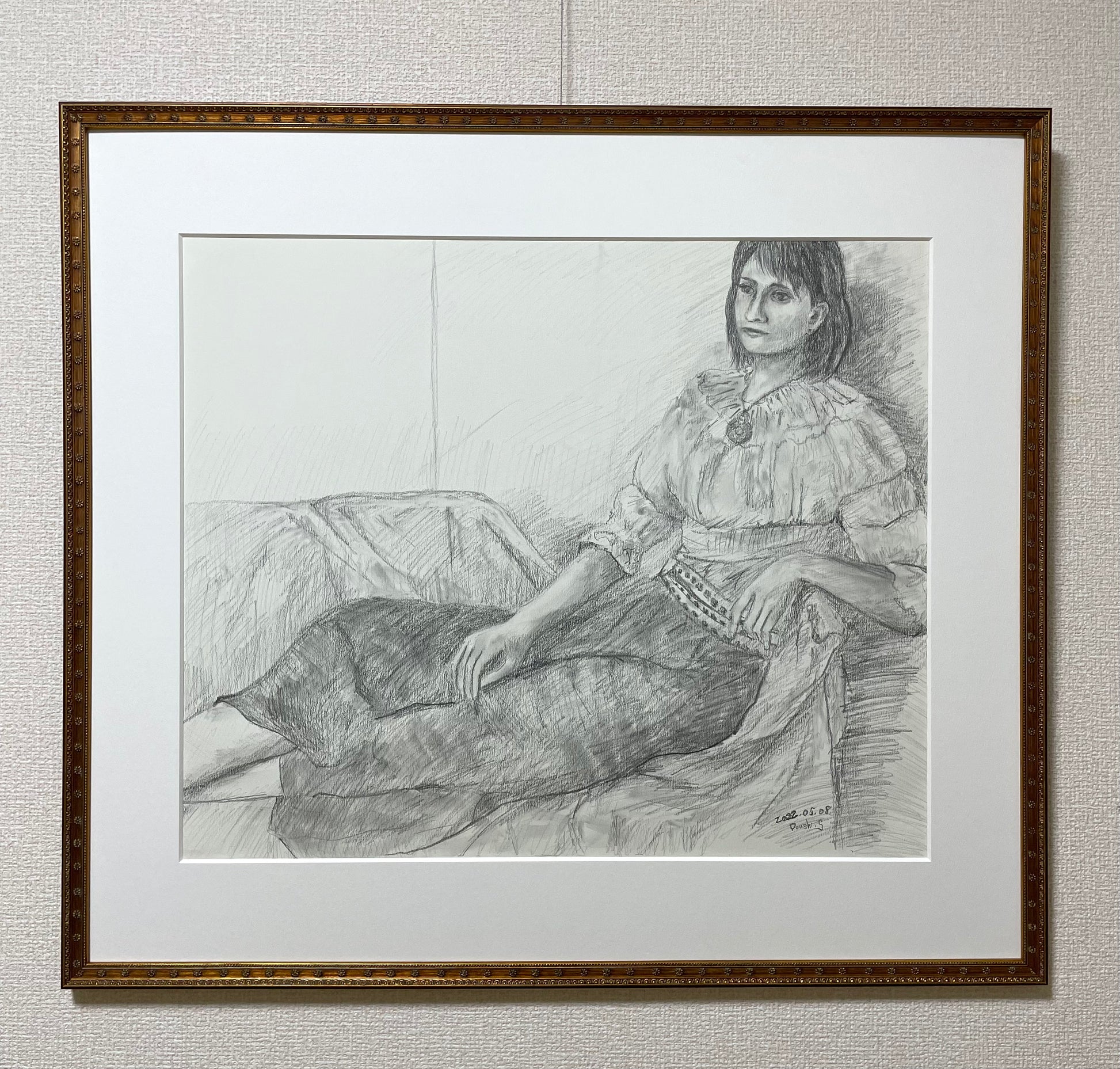 いつも唯一無二の芸術性を持つ彼女にリラックスしたポーズをお願いし、実際に見て描きました。